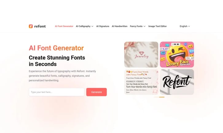 Refont.ai is an innovative online AI tool launched to democratize typography creation, allowing users to generate beautiful, personalized fonts like calligraphy, signatures, fancy text, and handwriting styles instantly from text inputs, with no design expertise needed. It excels in culturally appropriate designs, such as traditional Chinese calligraphy (e.g., Kaishu and Xingshu), and is ideal for social media, branding, posters, logos, and more, ensuring privacy by securely processing data without storage or training use.